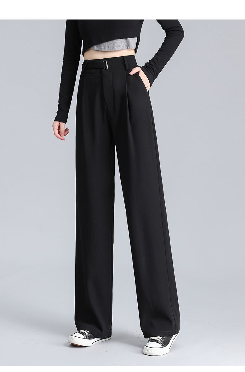 高腰垂感梨型休閒直筒西裝闊腿褲