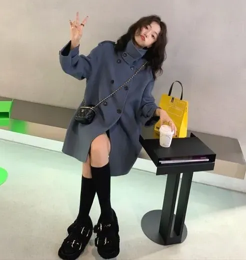 斗篷毛呢赫本風韓系加厚雙面羊絨外套
