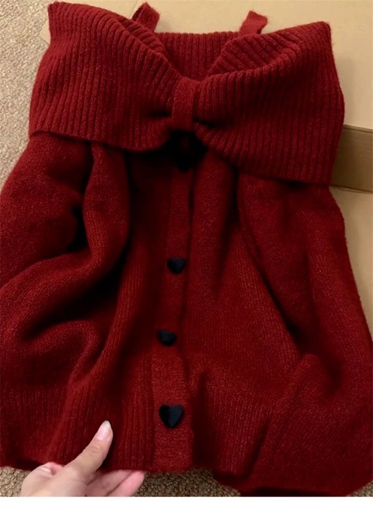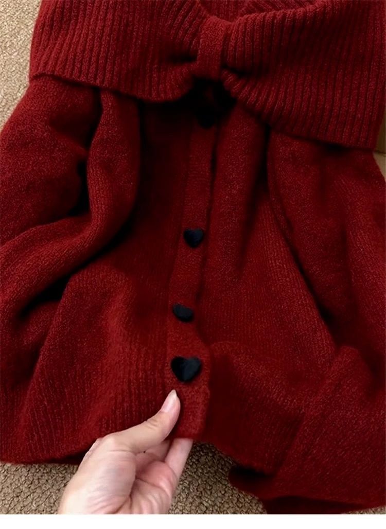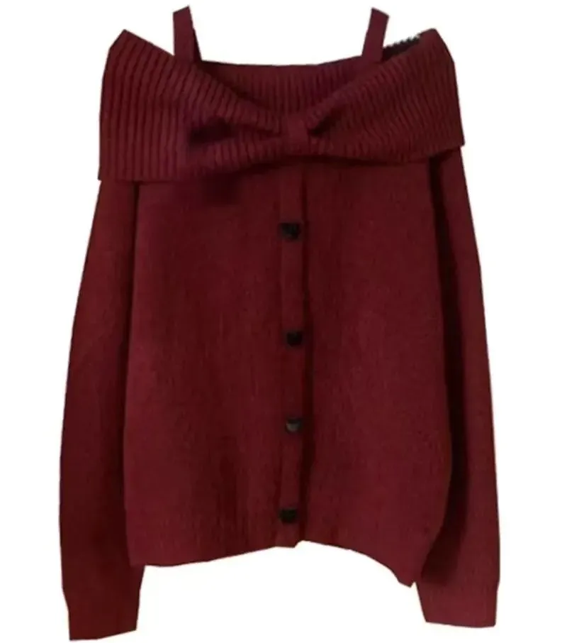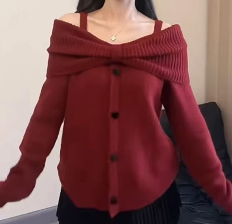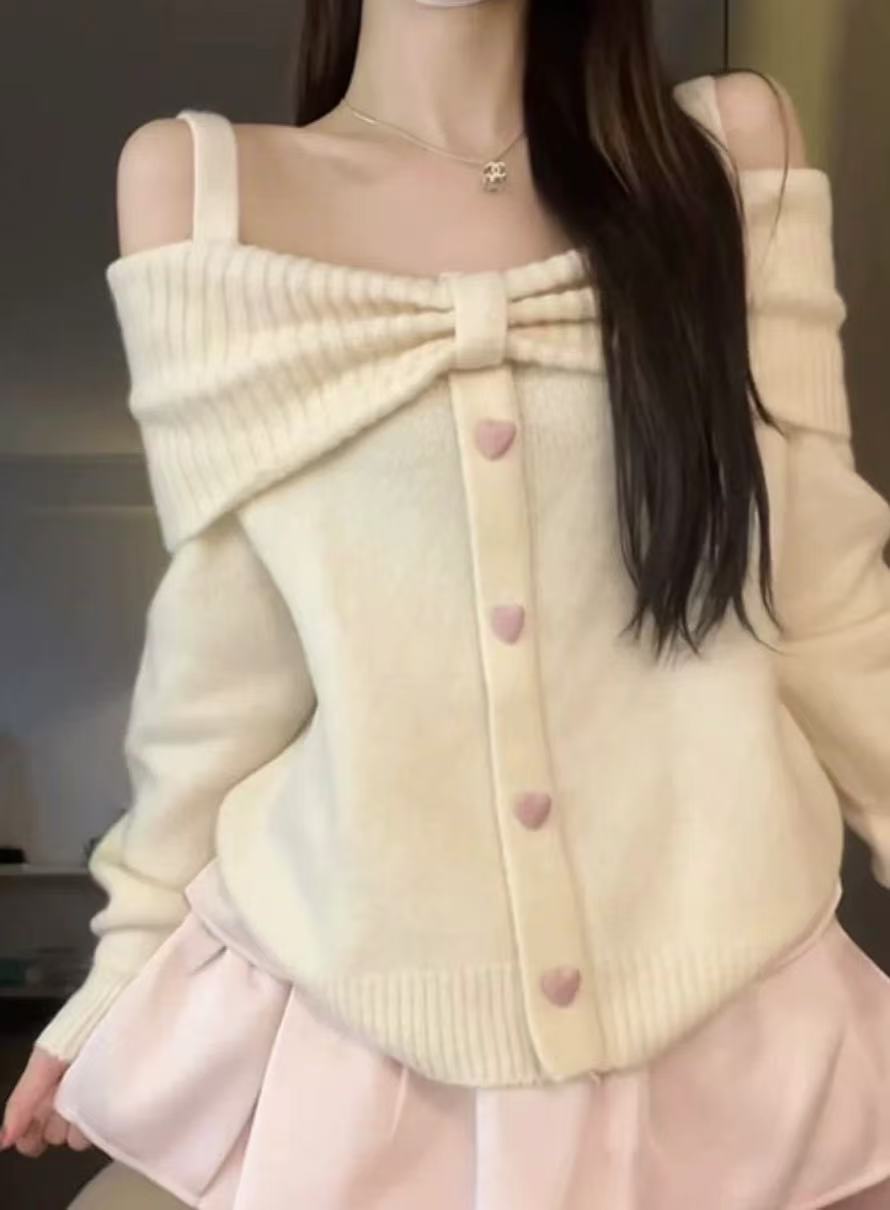 溫柔甜美一字肩韓系高級感露肩針織衫