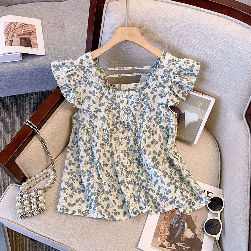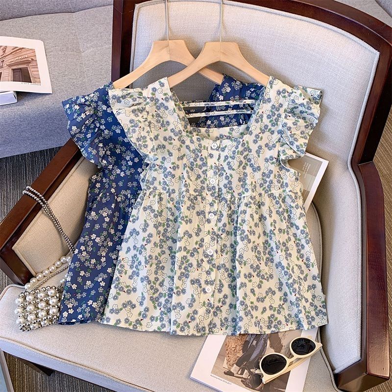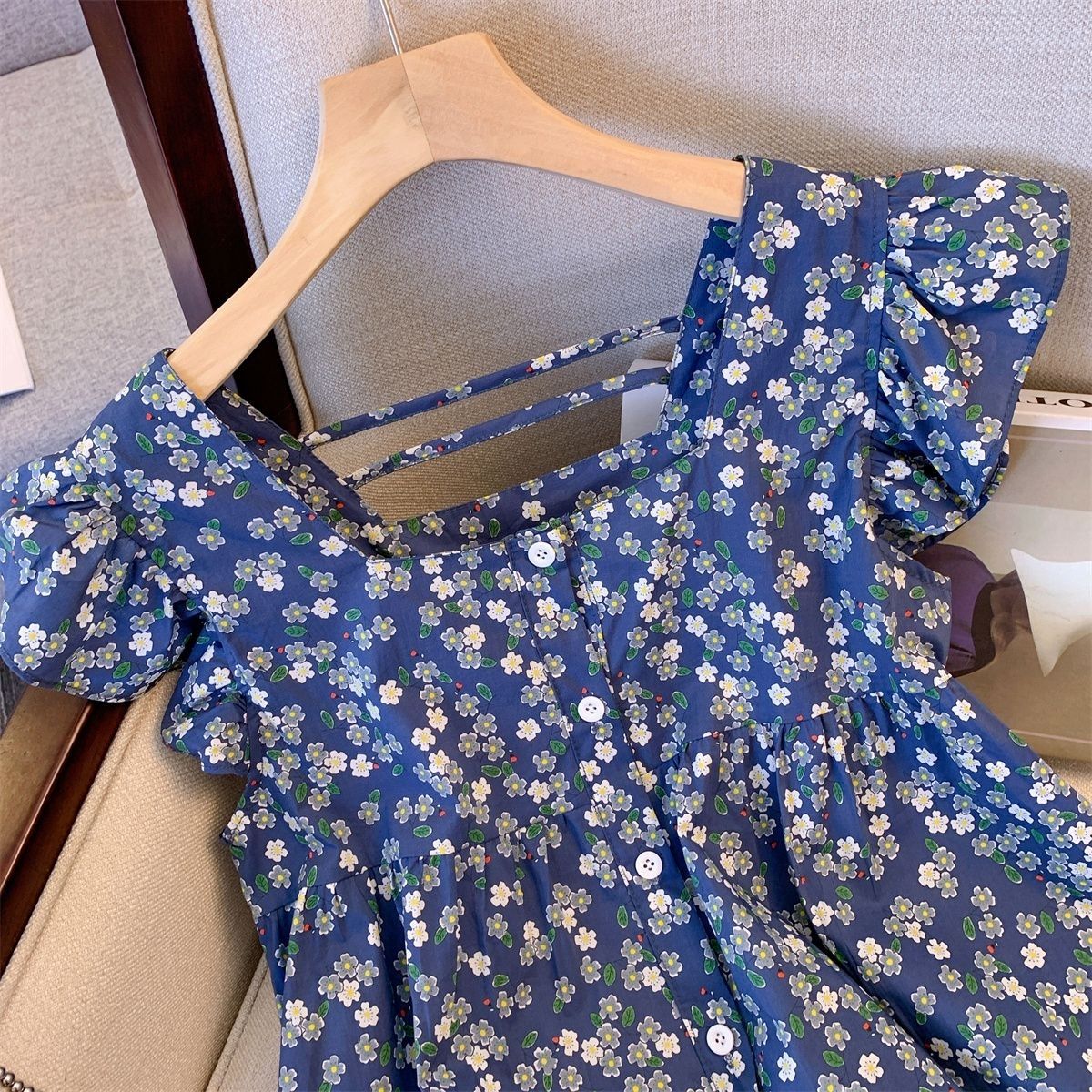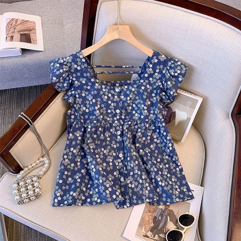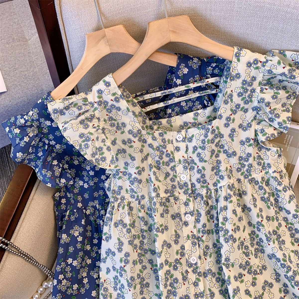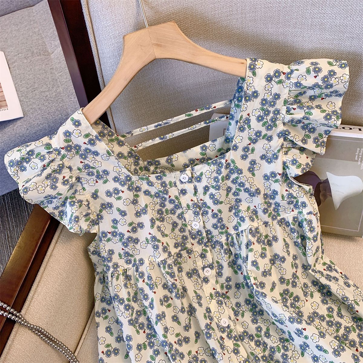 小清新甜美減齡碎花方領飛飛袖襯衫