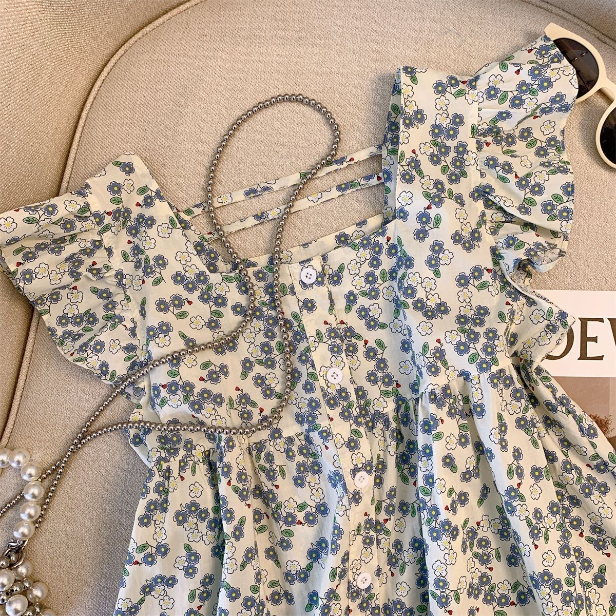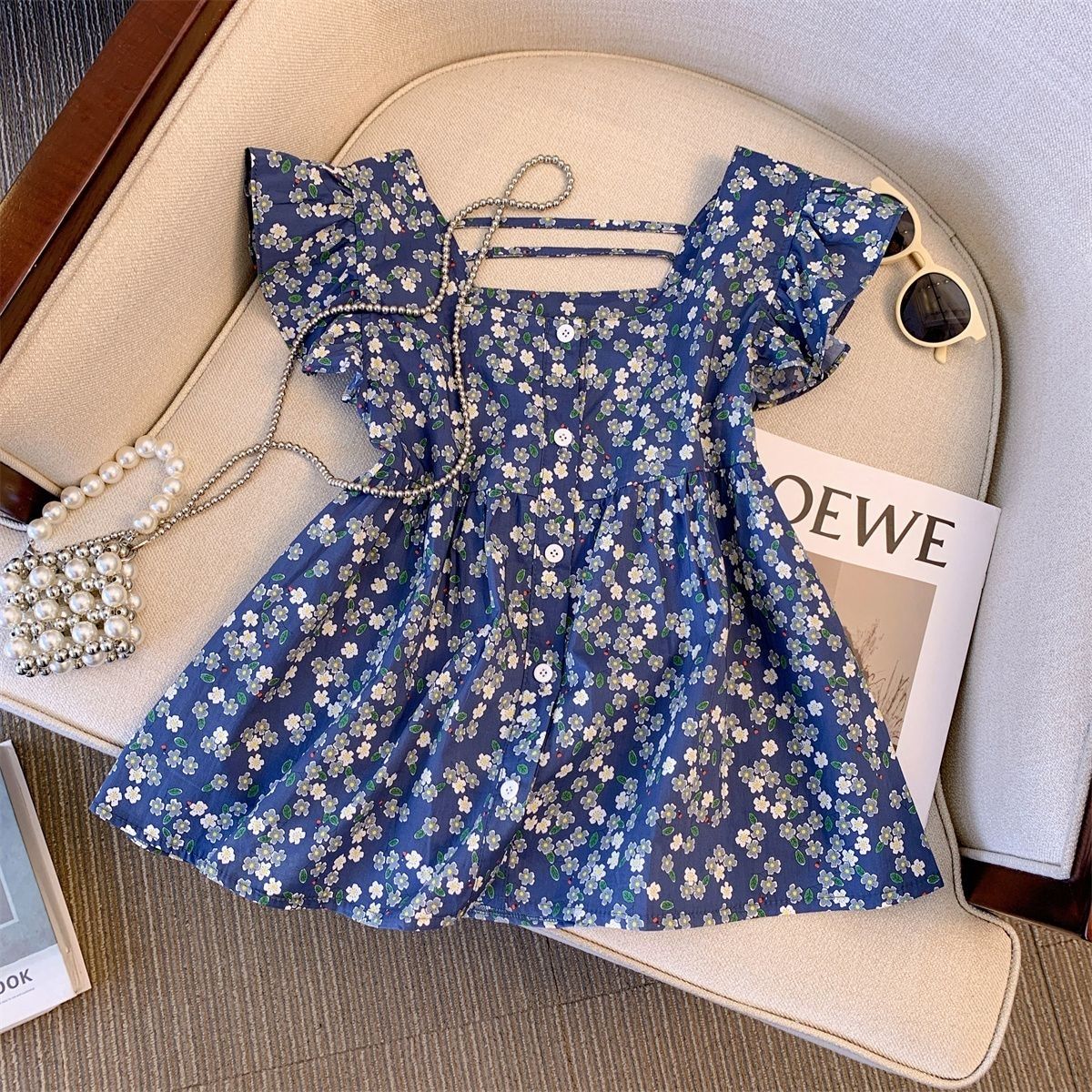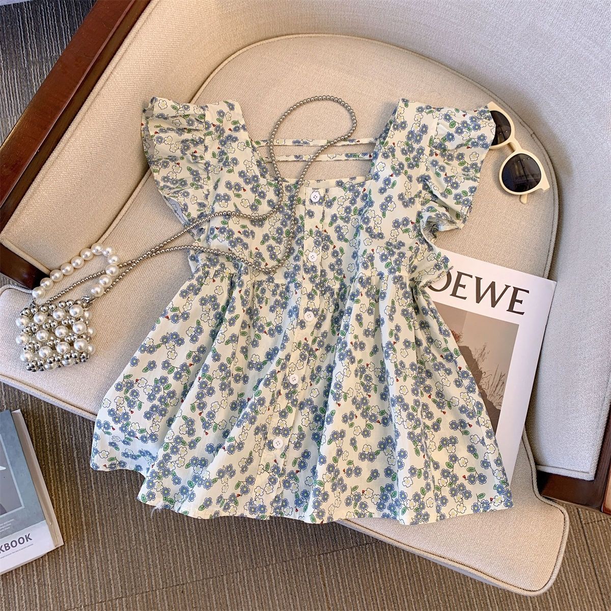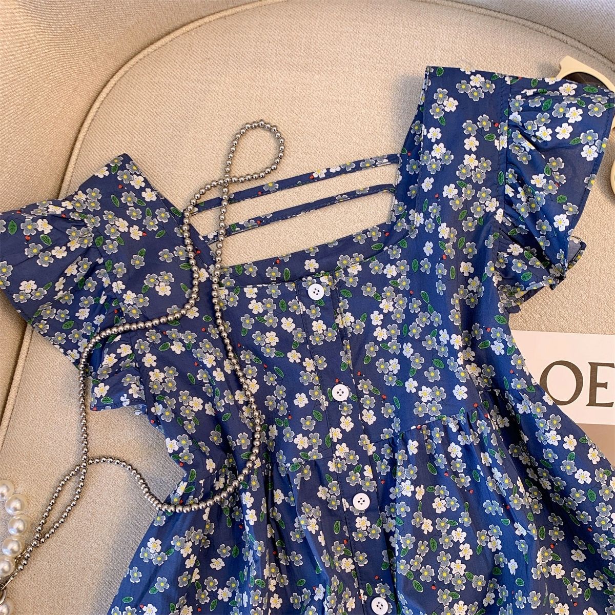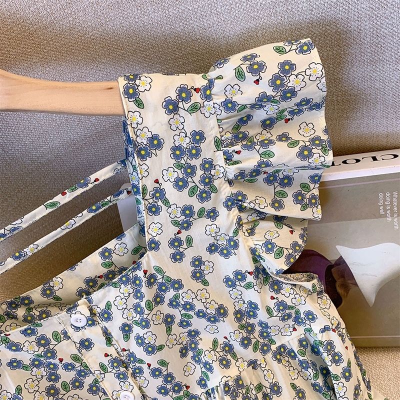 小清新甜美減齡碎花方領飛飛袖襯衫