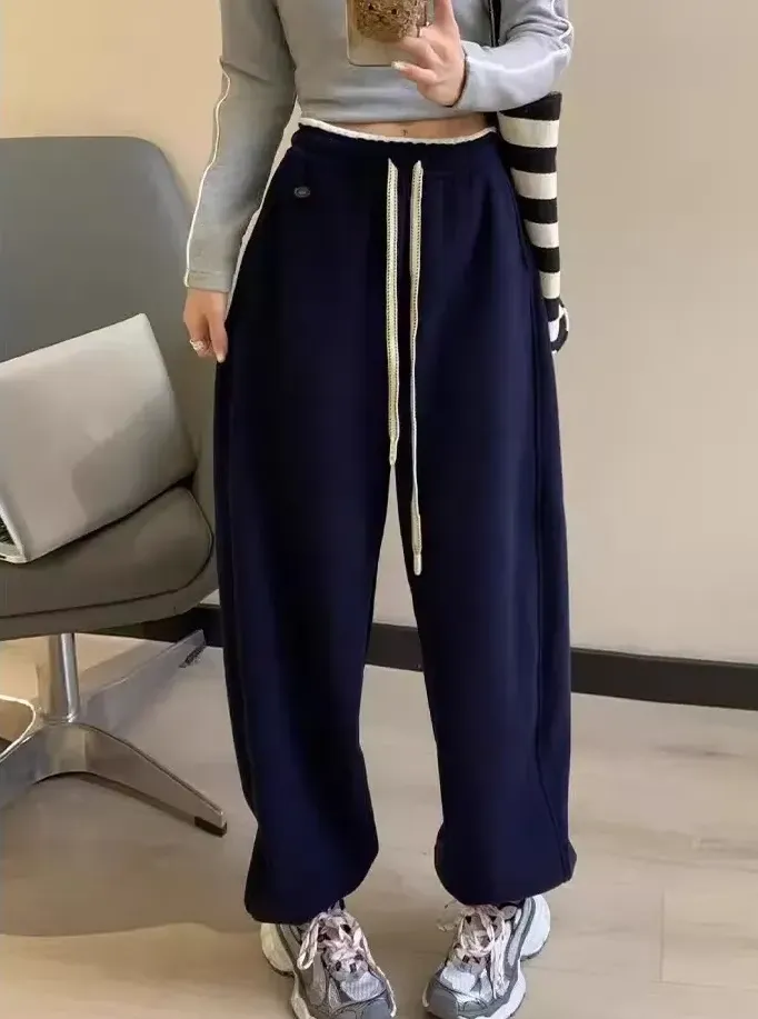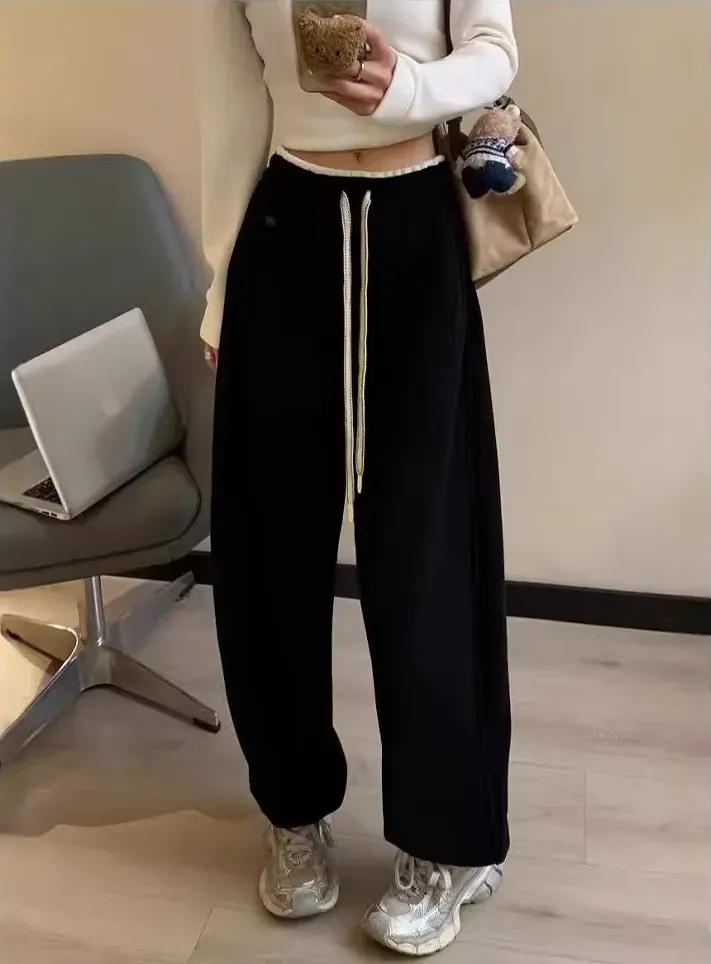 新款韓系元氣拼色休閒運動顯瘦雪地褲