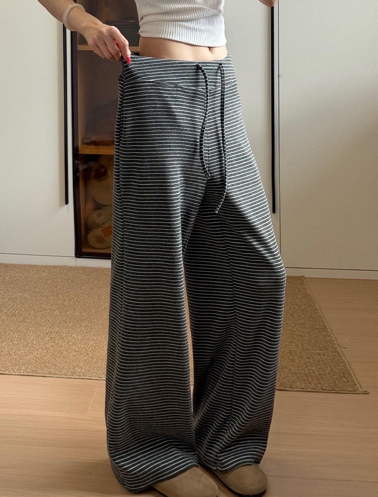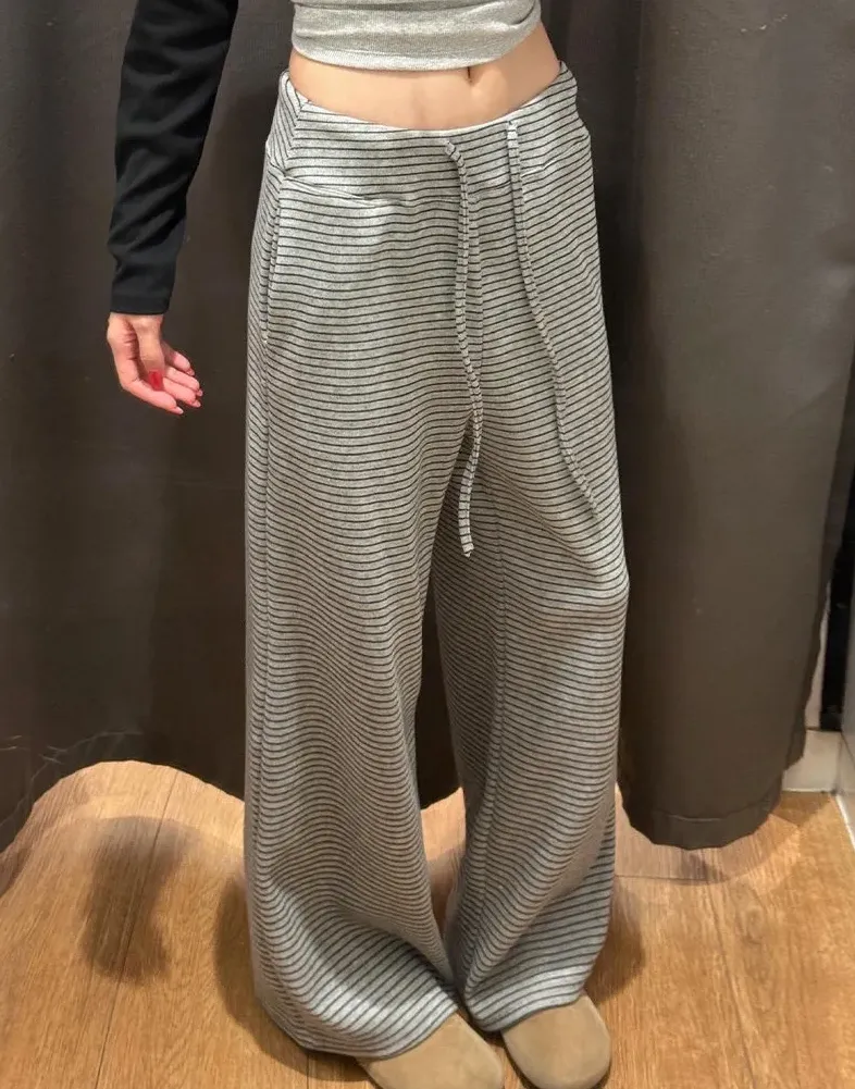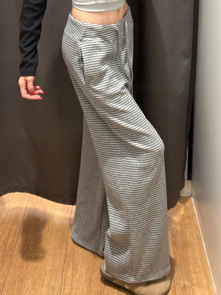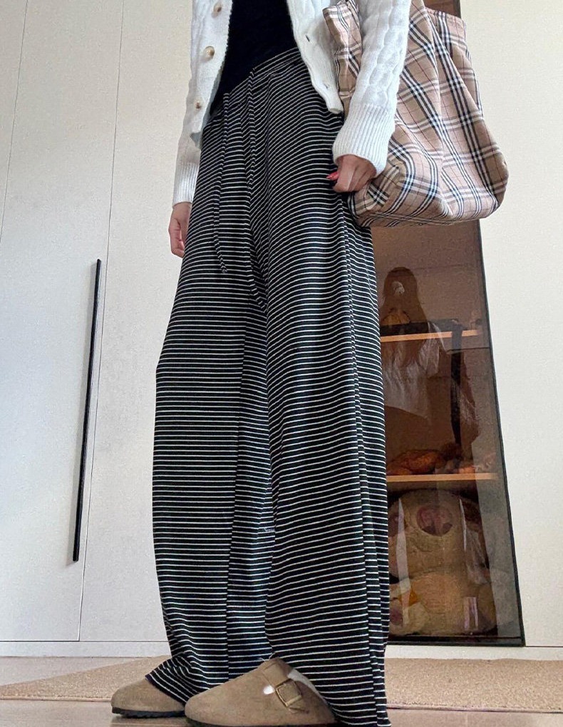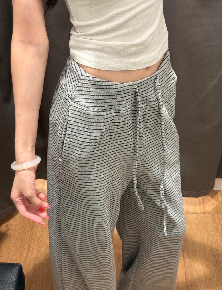 糯米垂感高腰慵懒显瘦條紋闊腿褲