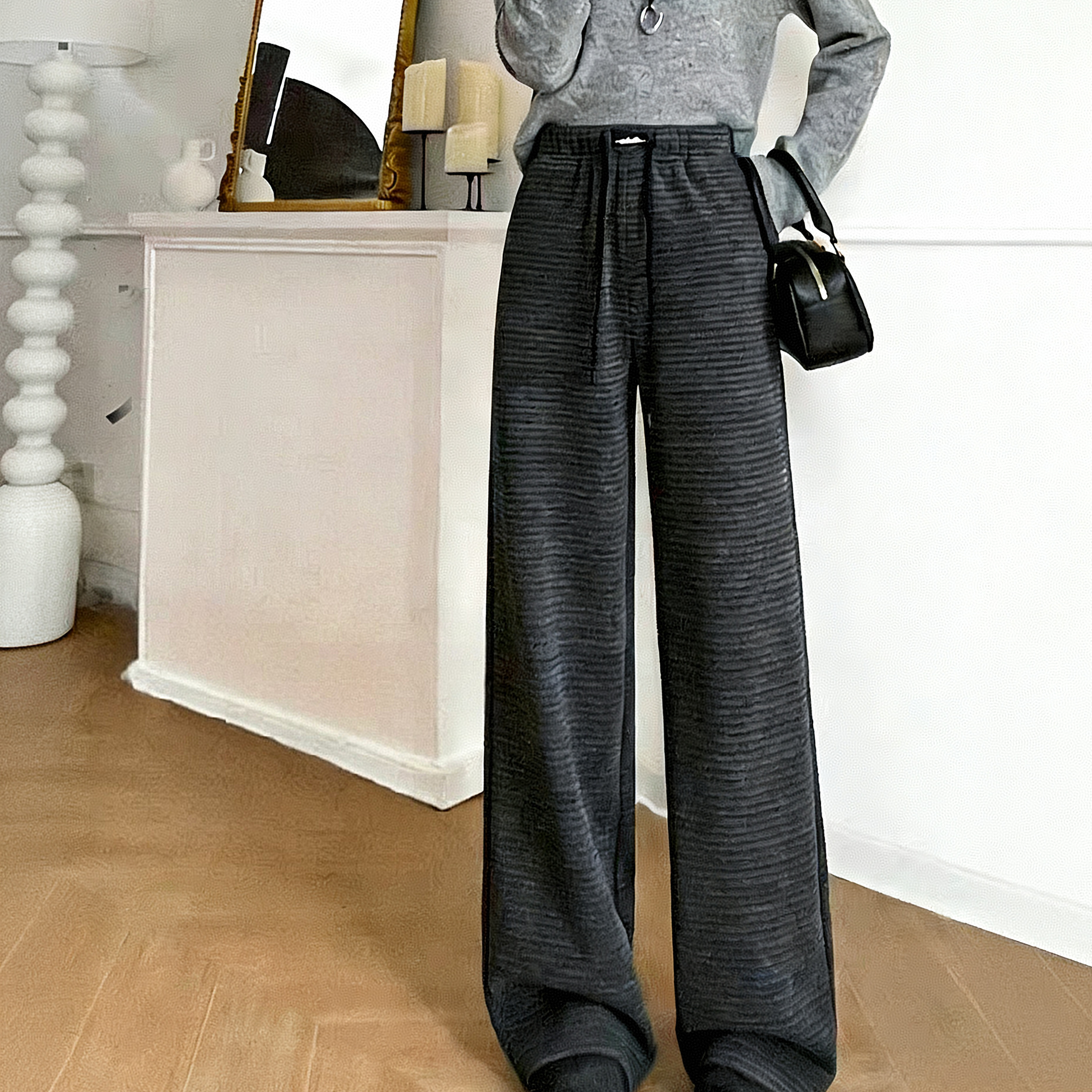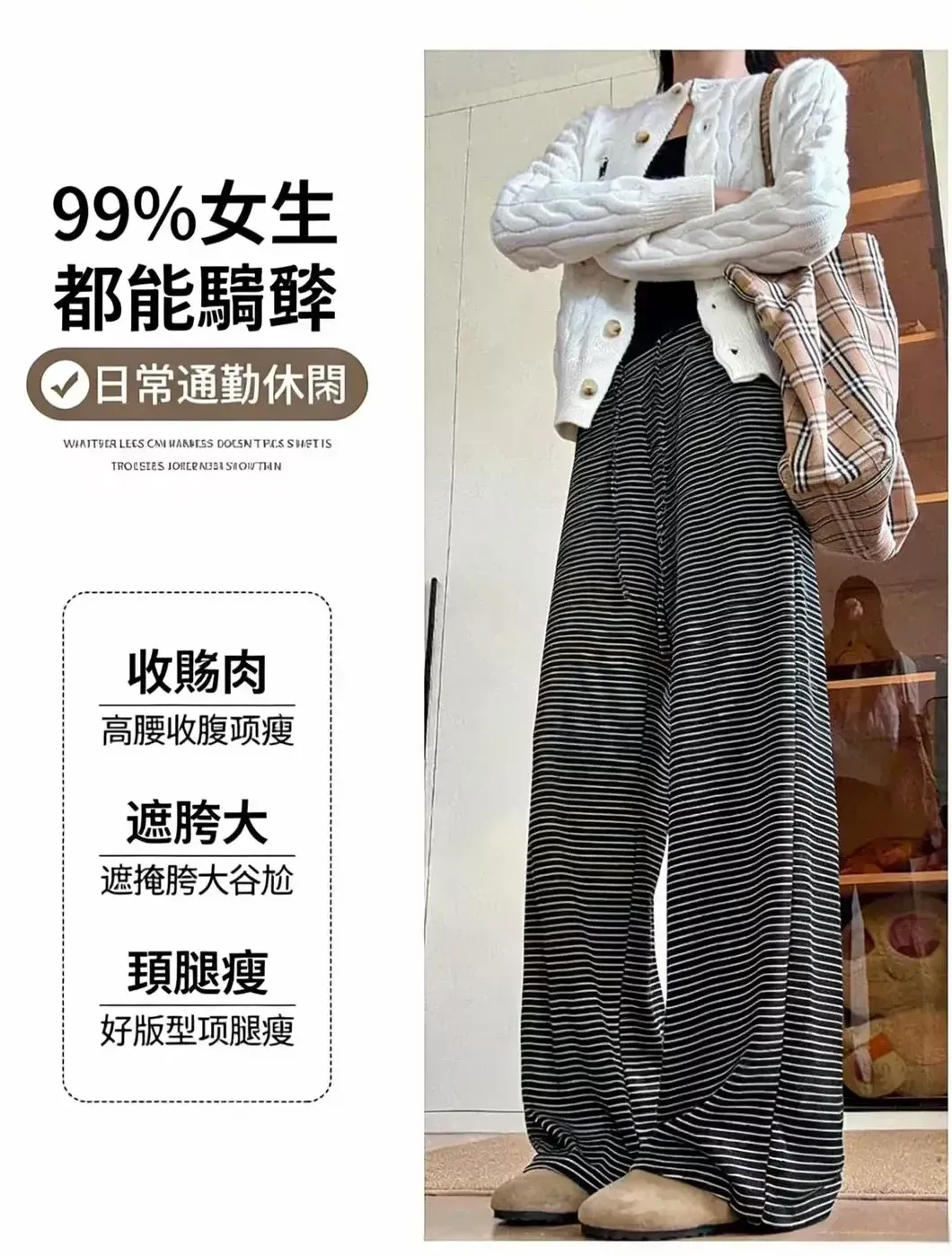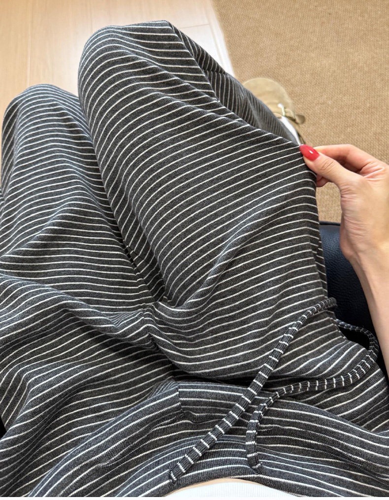 糯米垂感高腰慵懒显瘦條紋闊腿褲