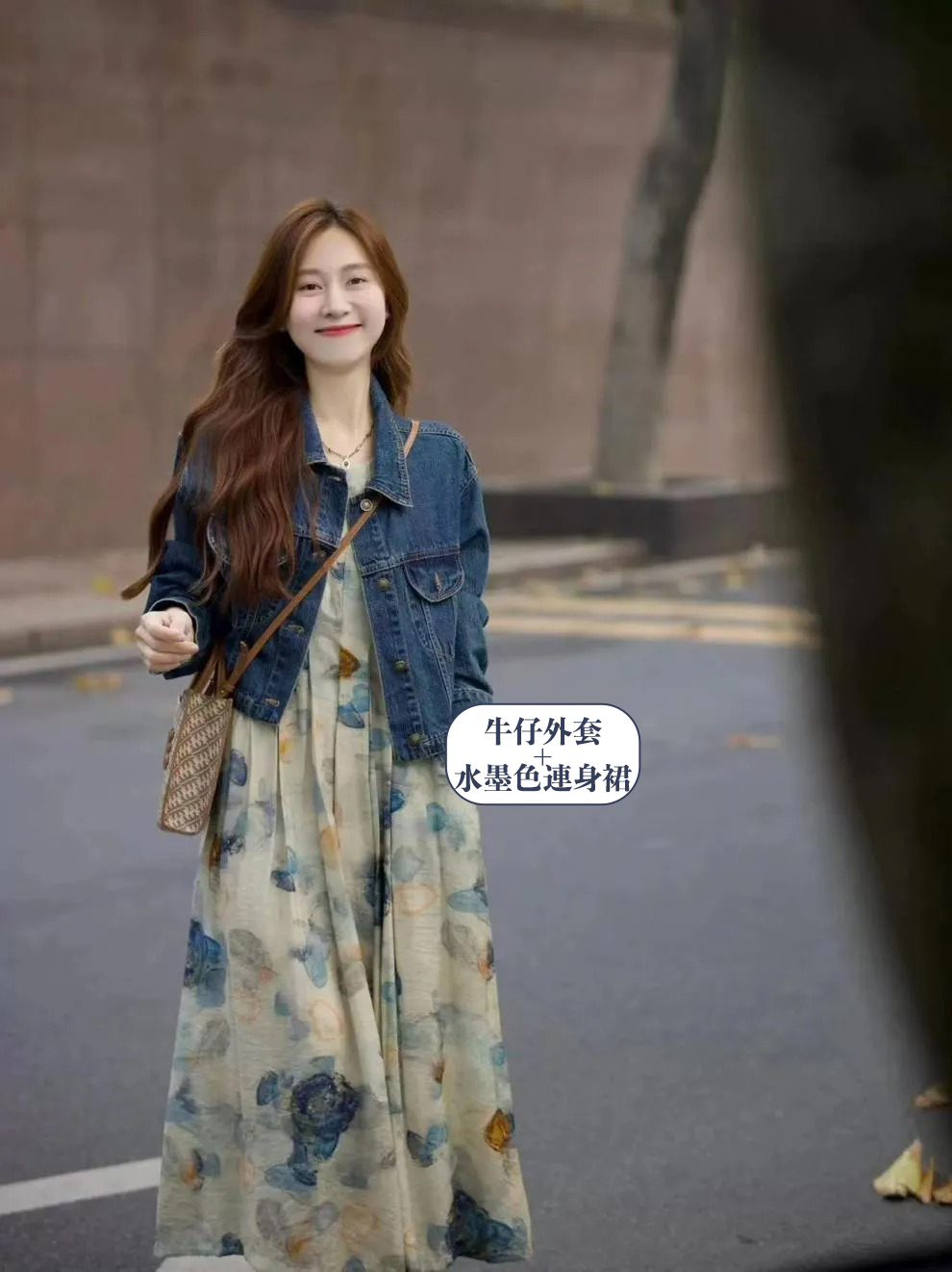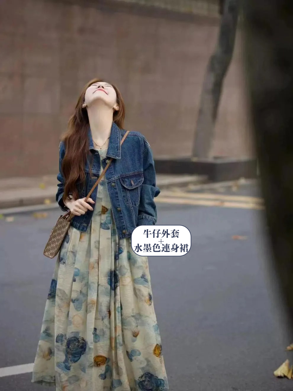 水墨畫文藝氣質洋裝牛仔外套兩件套裝