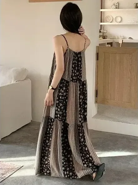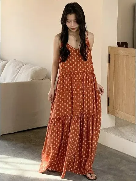 日系度假風顯白顯瘦大碼薄款沙灘吊帶裙