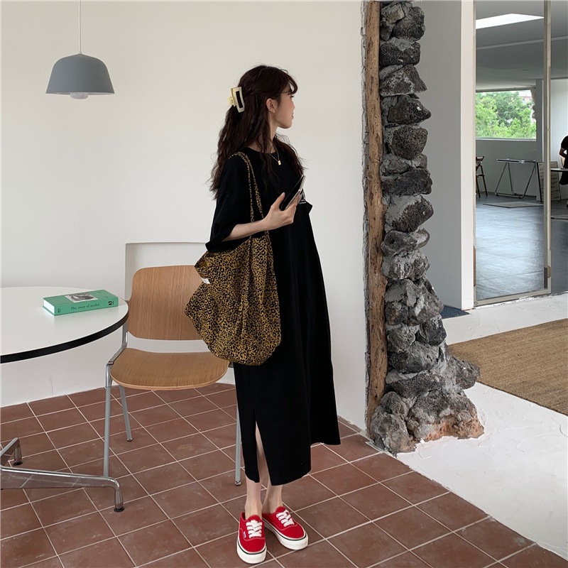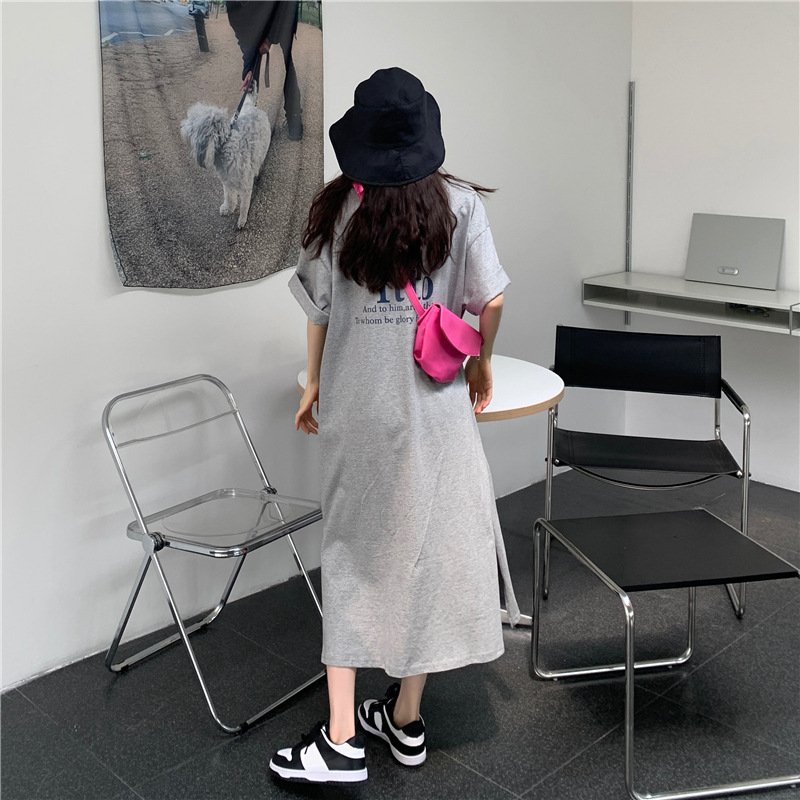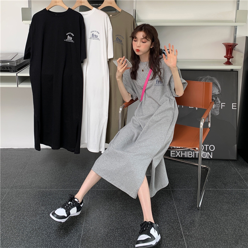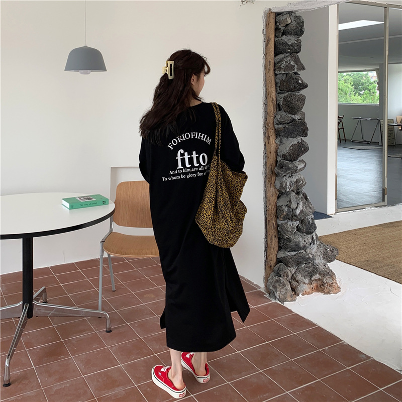純棉bf風寬鬆休閑中長款大碼過膝連身裙