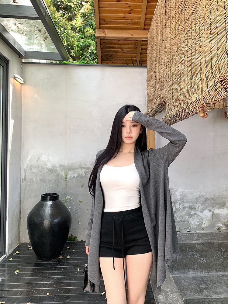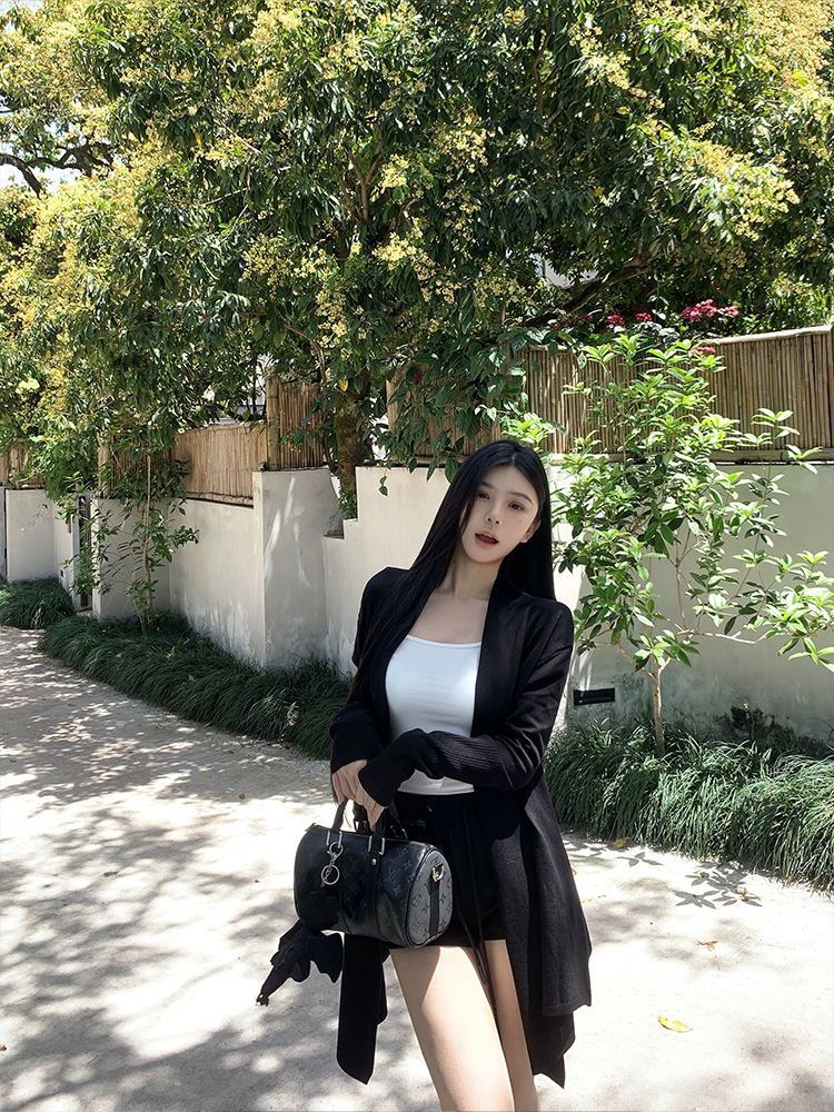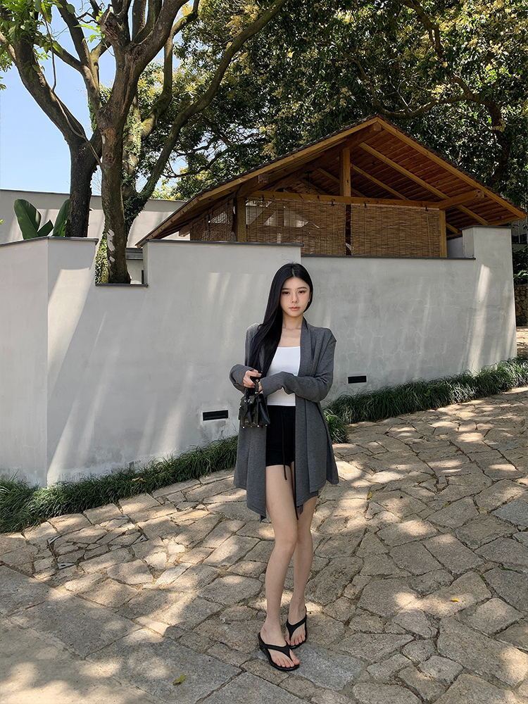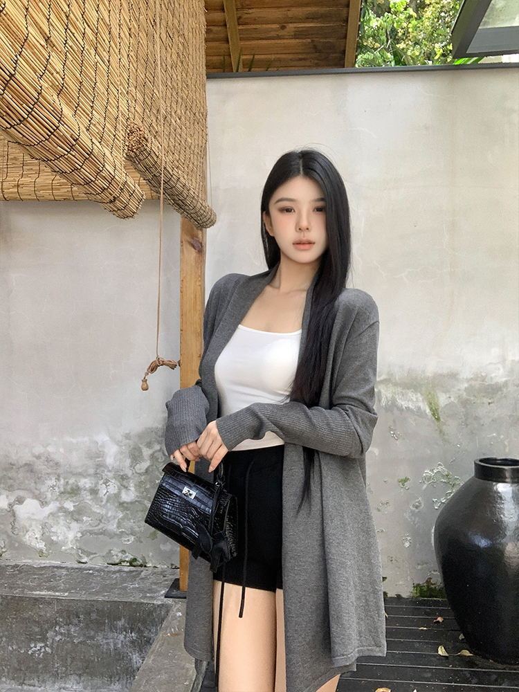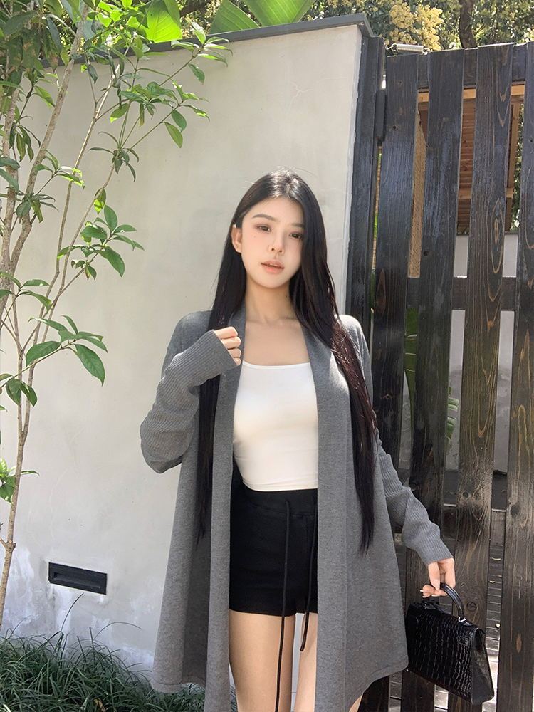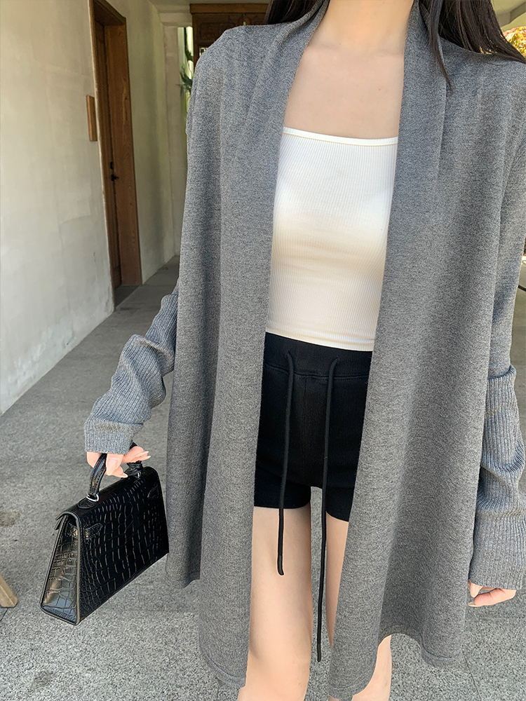 韓版寬鬆休閑中長款外套薄款毛衣針織開衫