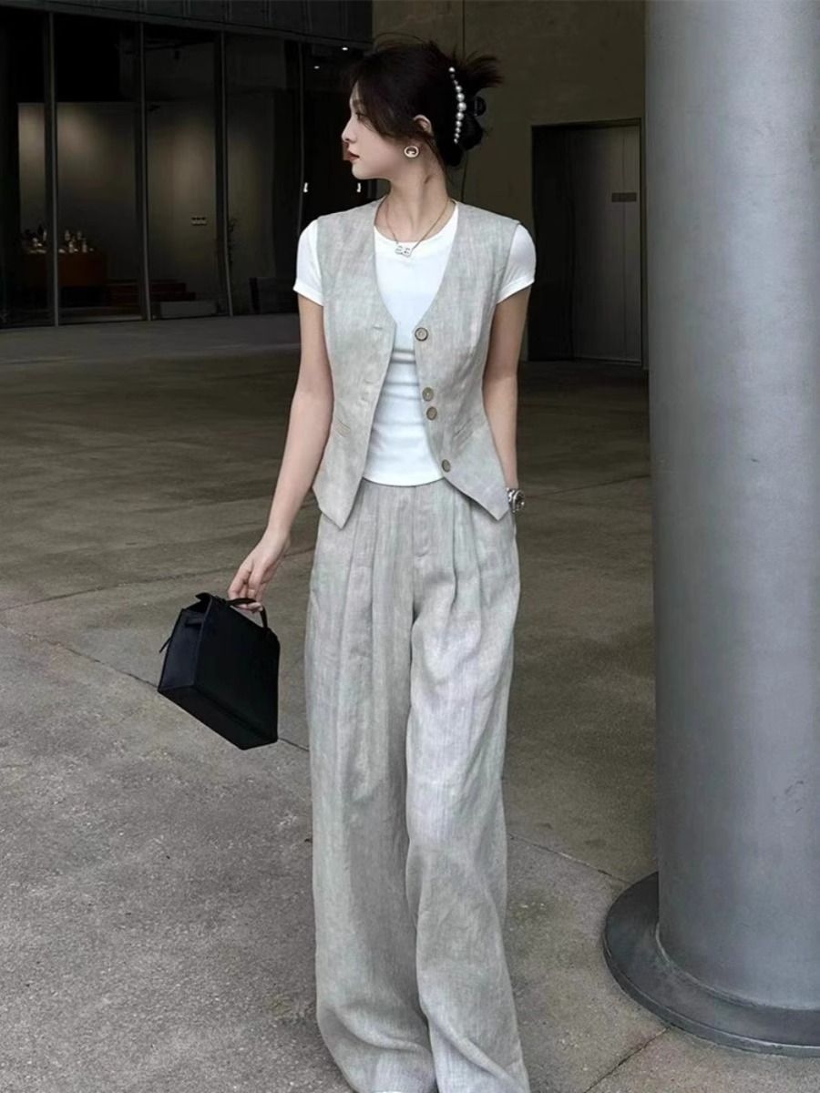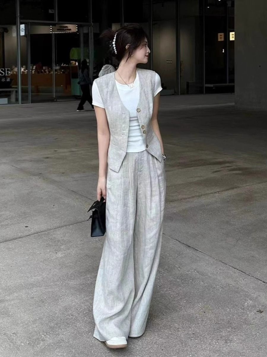 【單品/套裝】減齡洋氣時尚高級感小香風馬甲闊腿褲兩件套裝