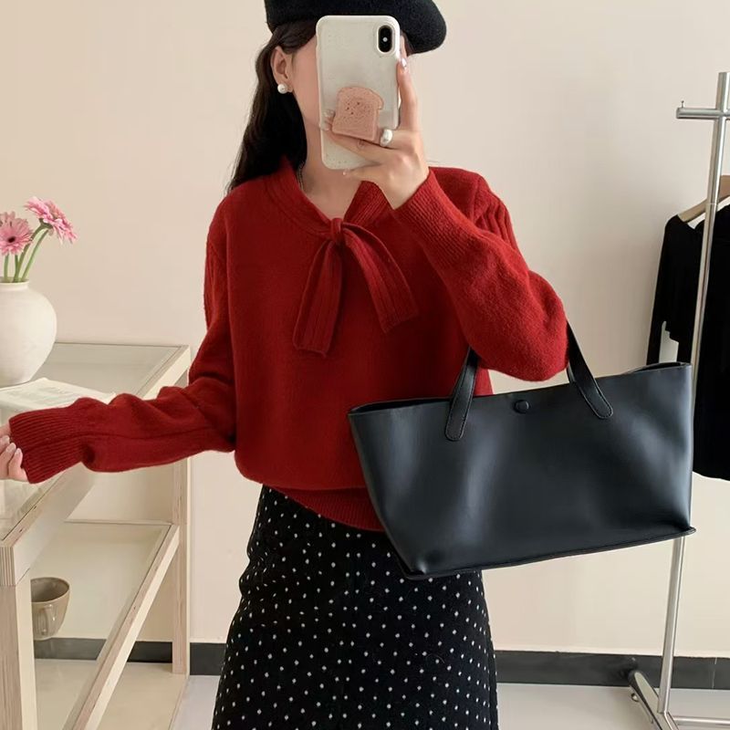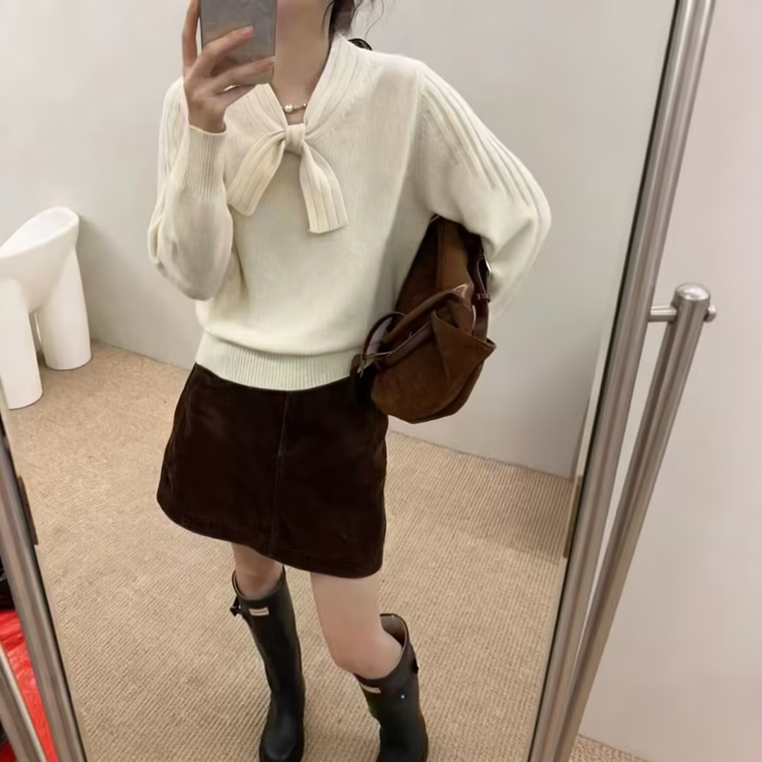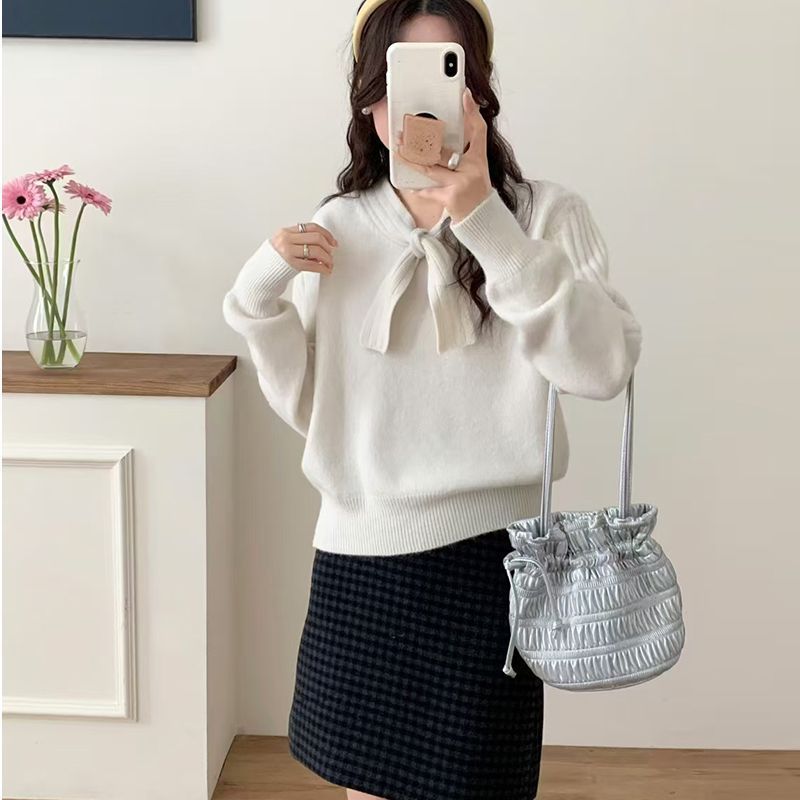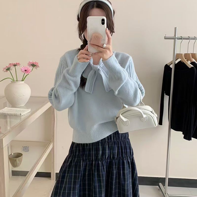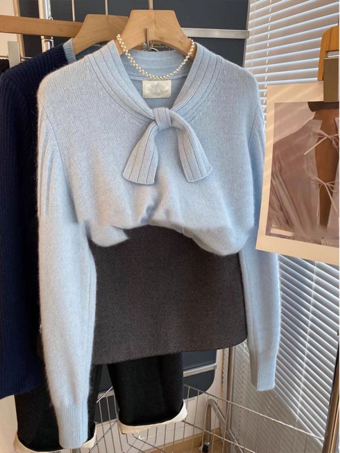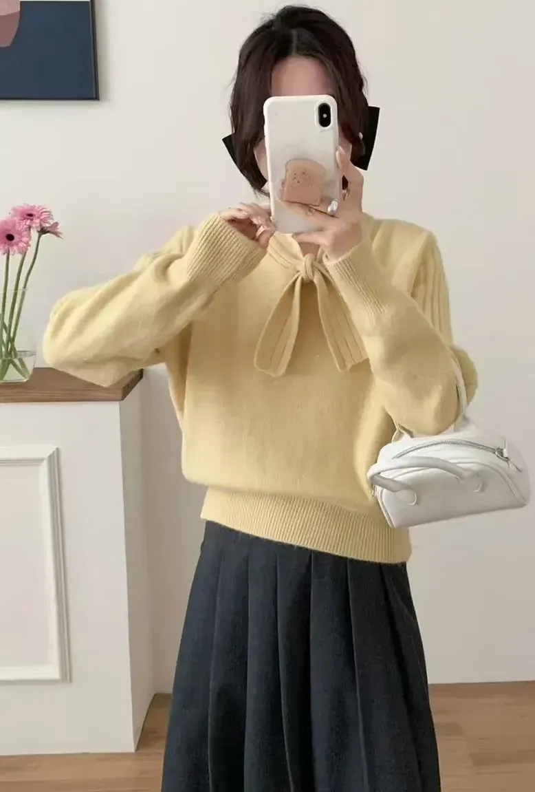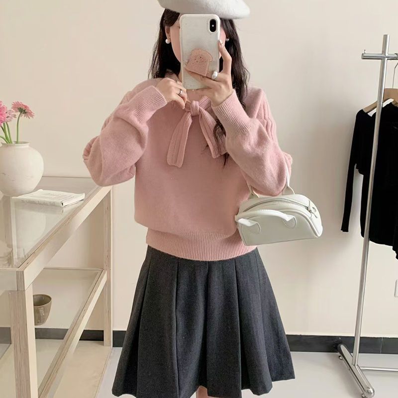 小香風立體蝴蝶結溫柔軟糯百搭針織衫