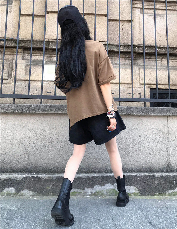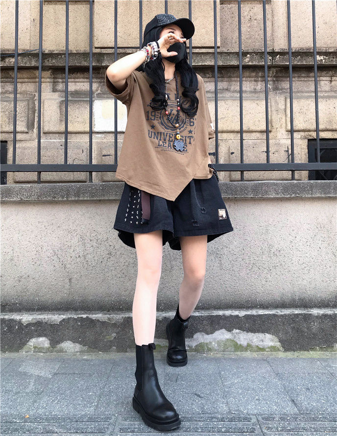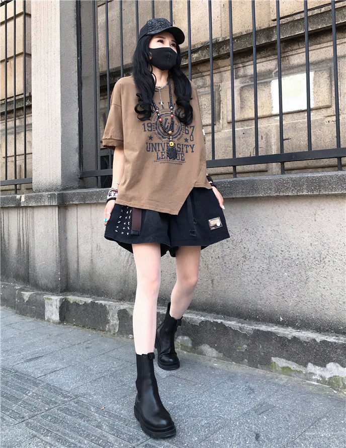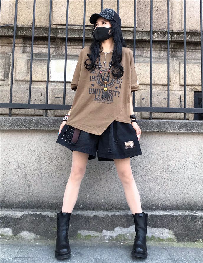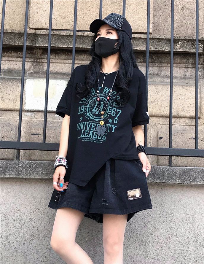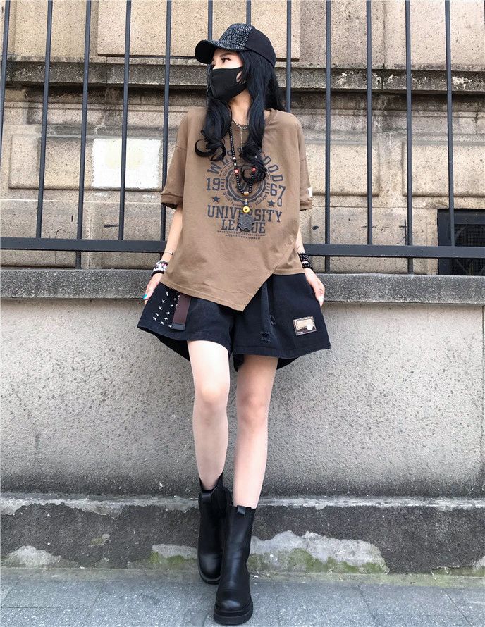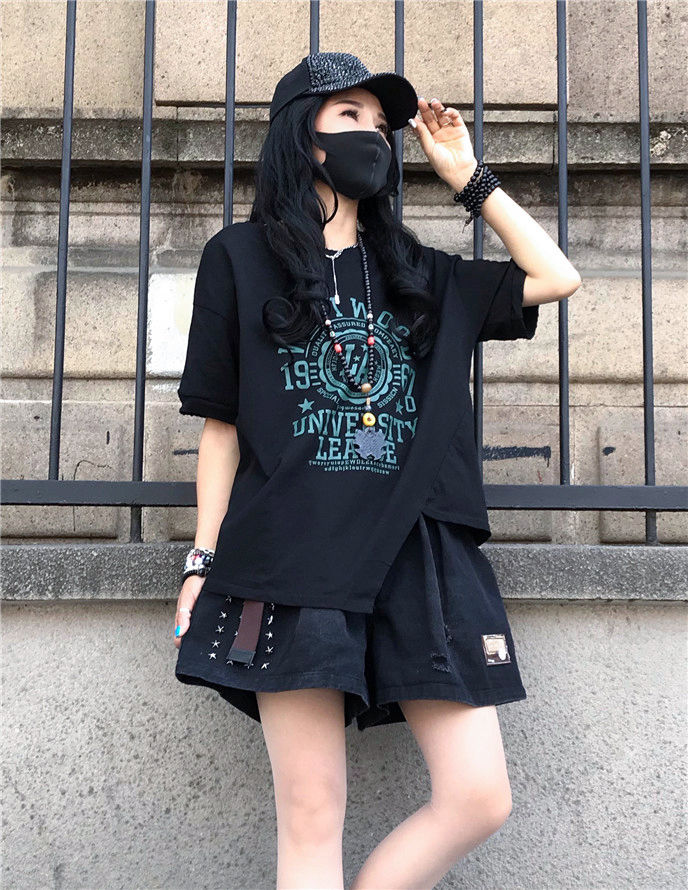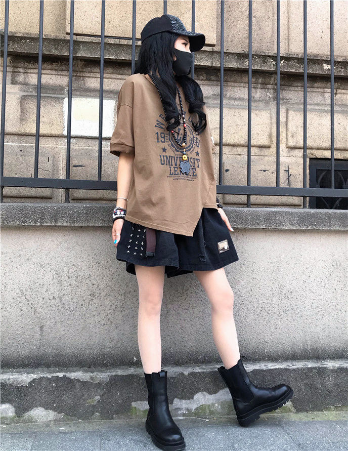 復古時尚百搭不規則寬鬆印花休閒短袖