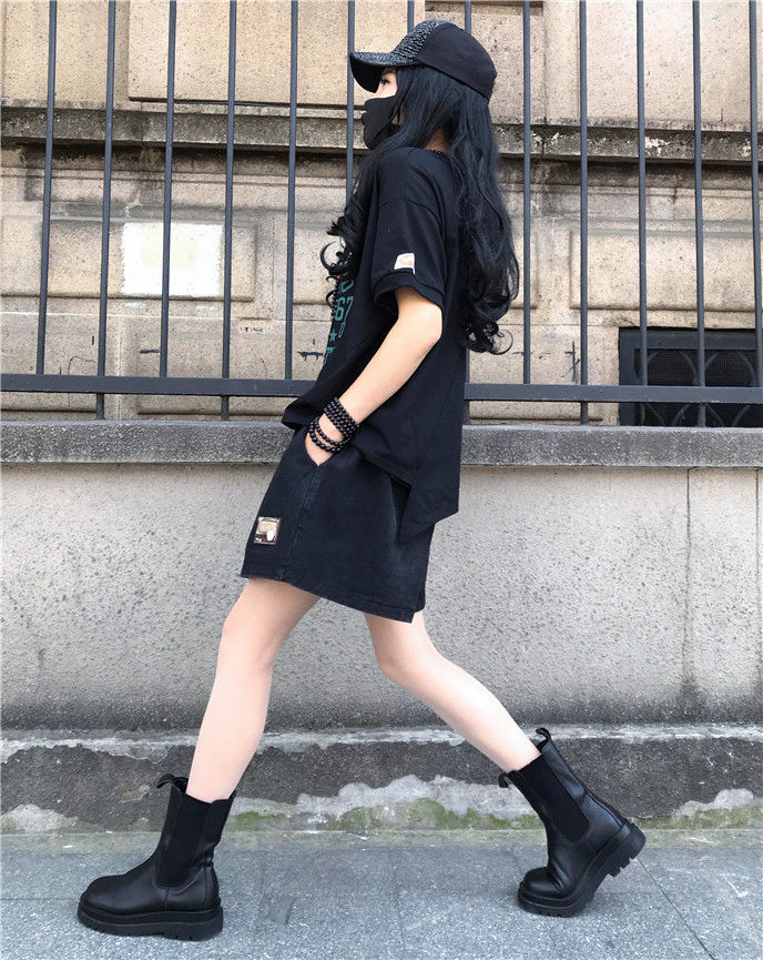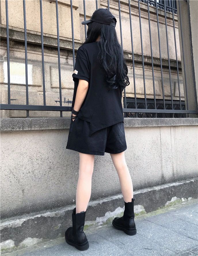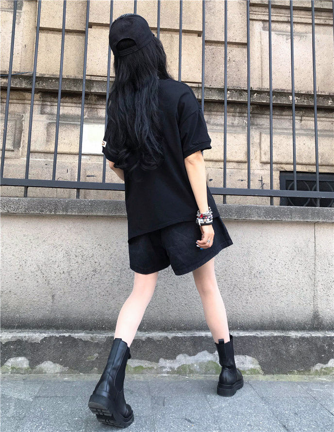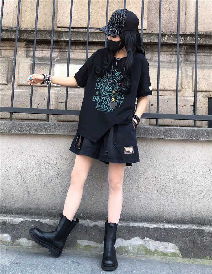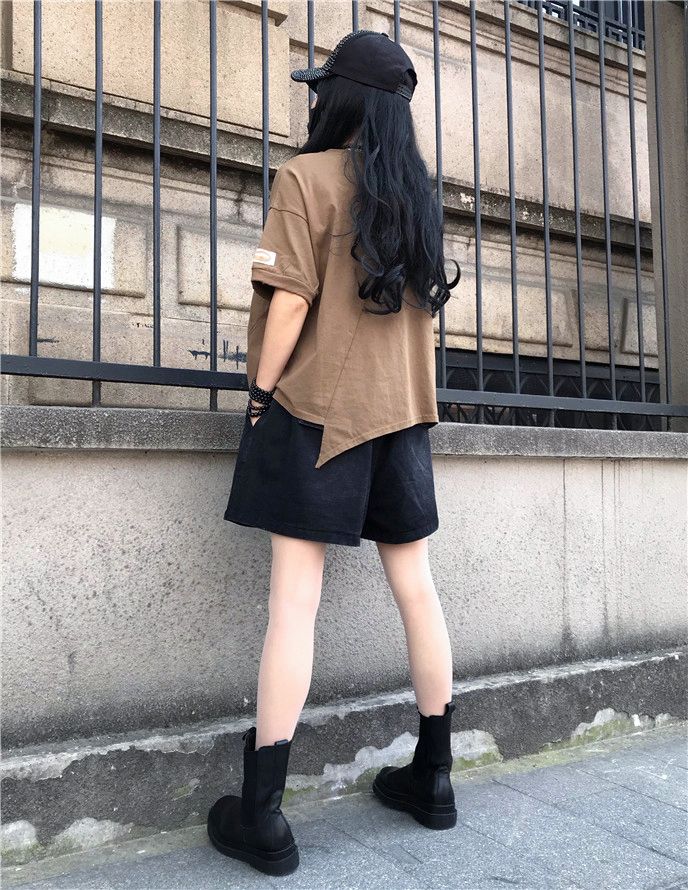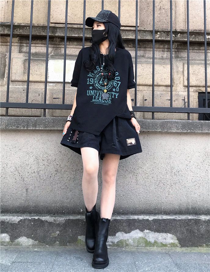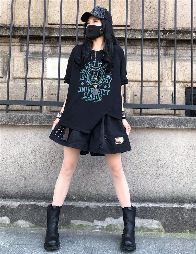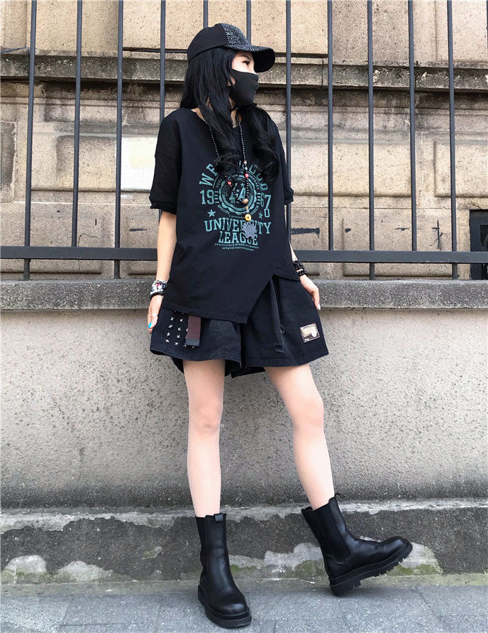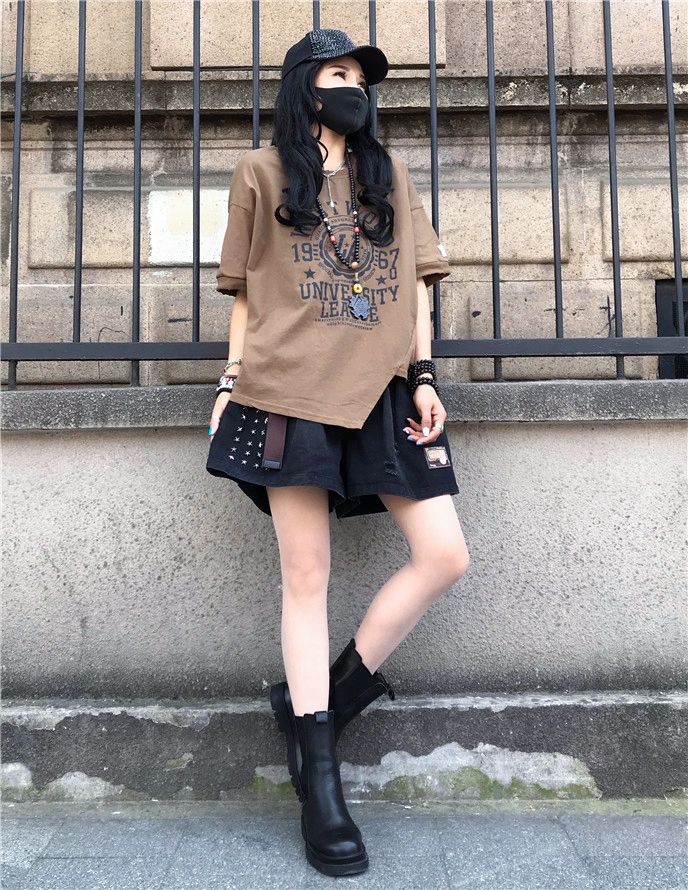 復古時尚百搭不規則寬鬆印花休閒短袖