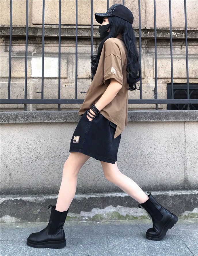 【套裝】時尚休閒寬鬆T恤+運動高腰A字裙兩件套裝