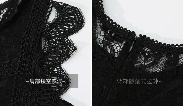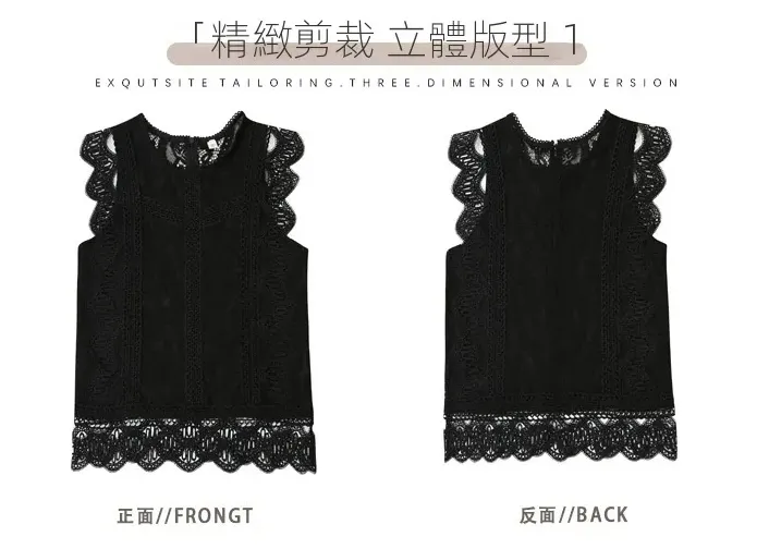 蕾絲衫時尚波浪邊無袖鏤空洋氣短袖