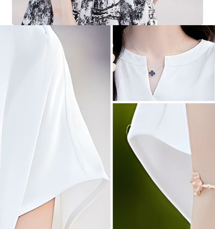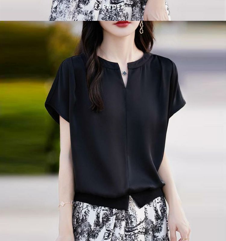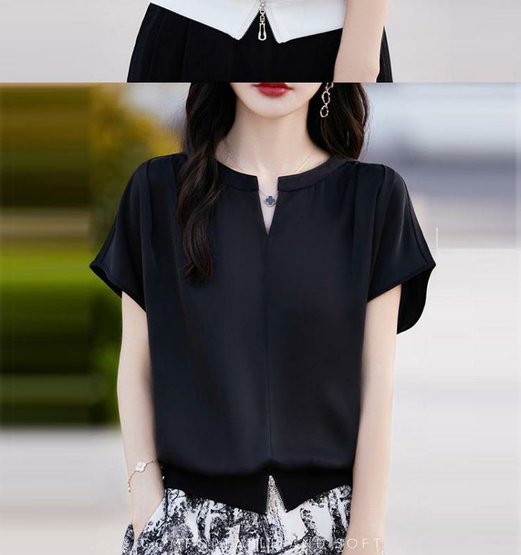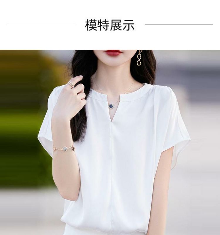 落肩小衫短款V領純色寬鬆短袖T恤