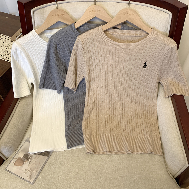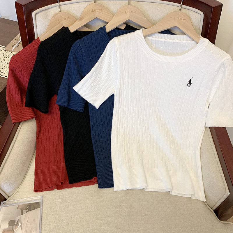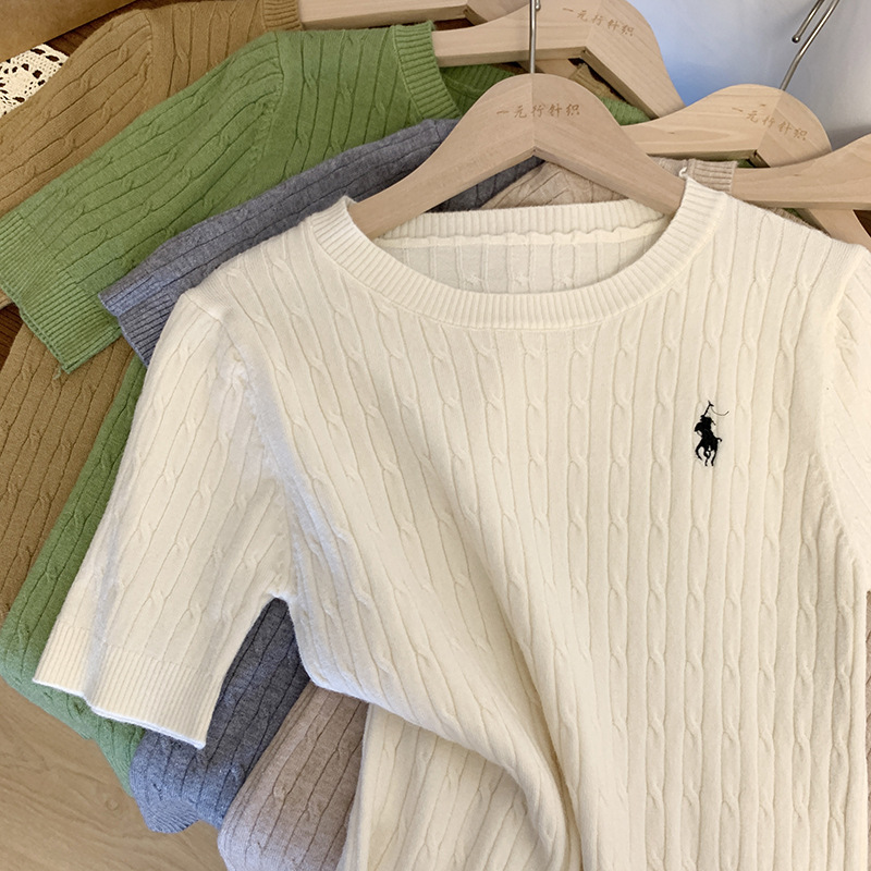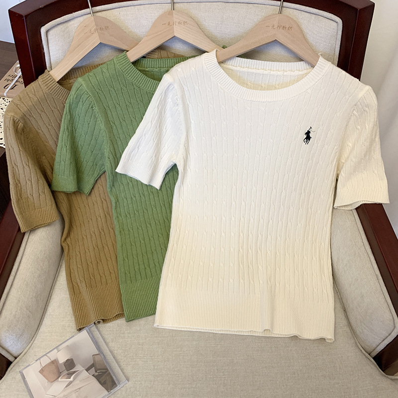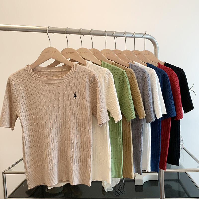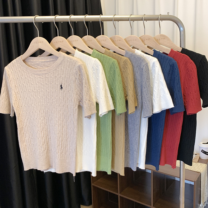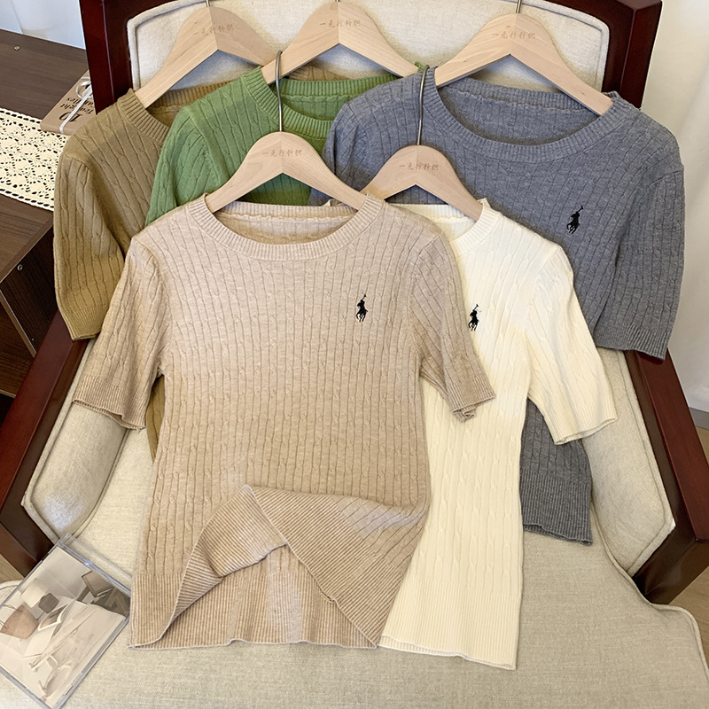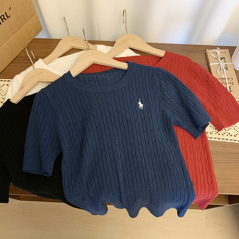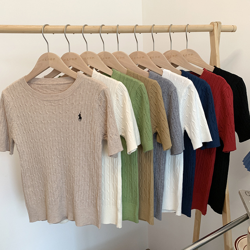 軟糯親膚小馬刺繡麻花針織衫百搭短袖