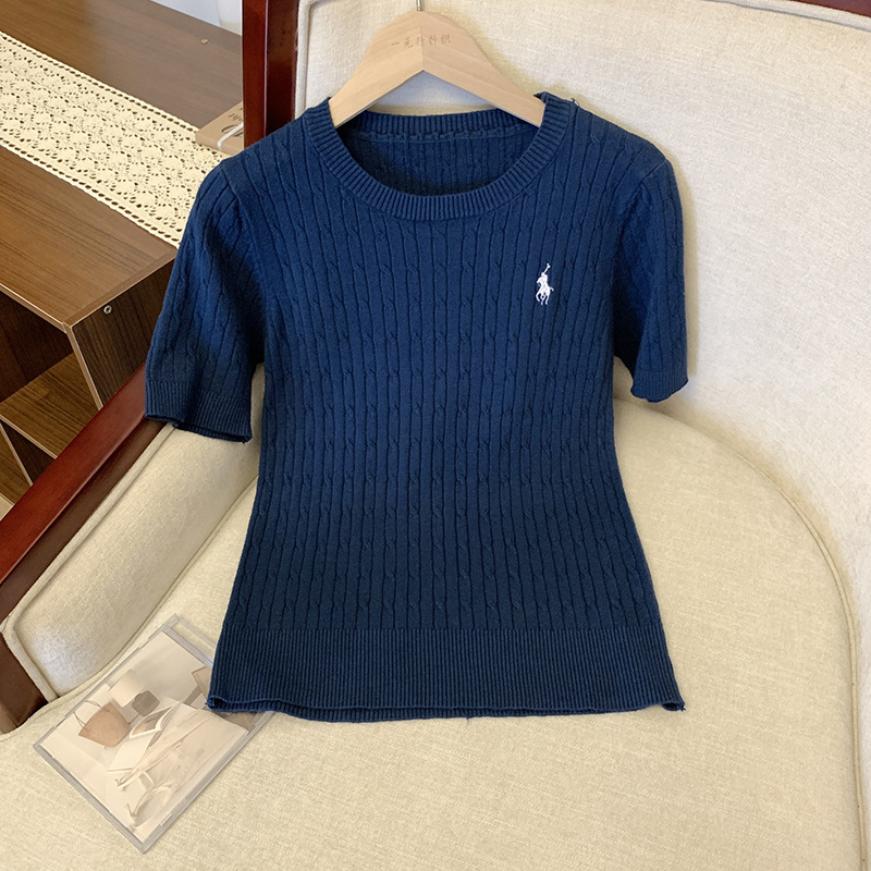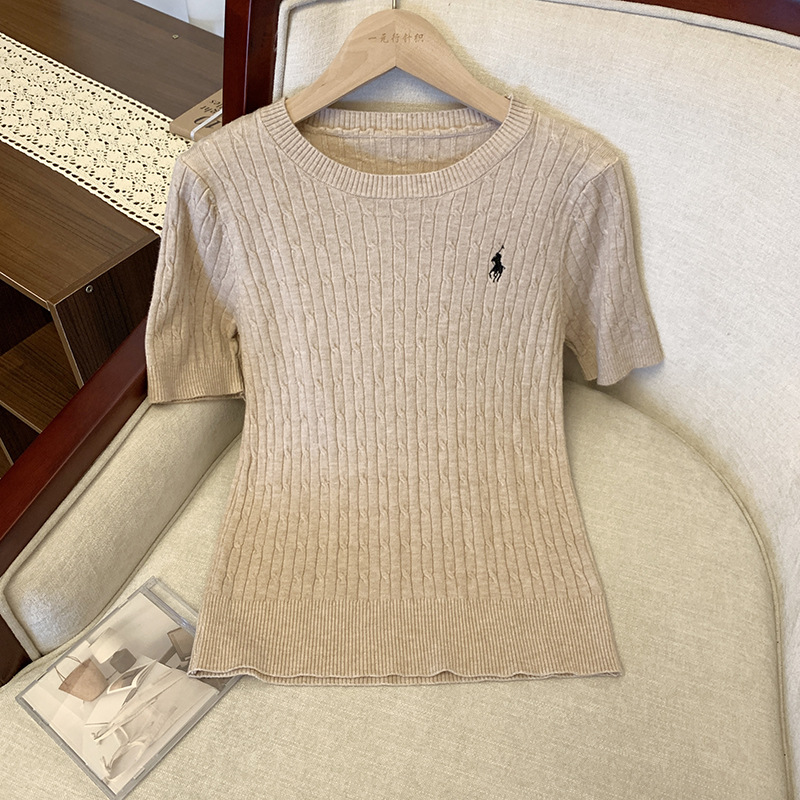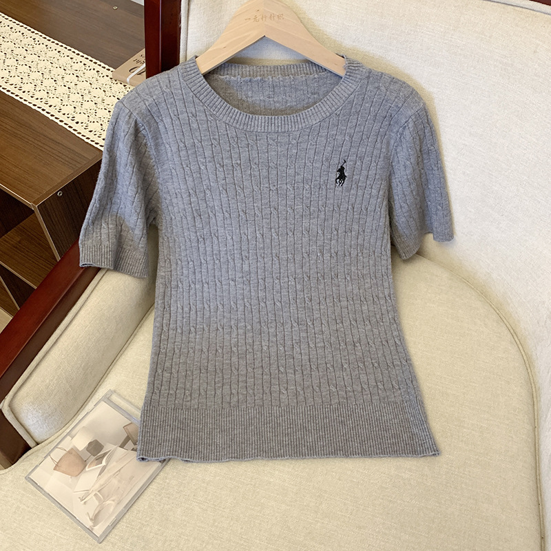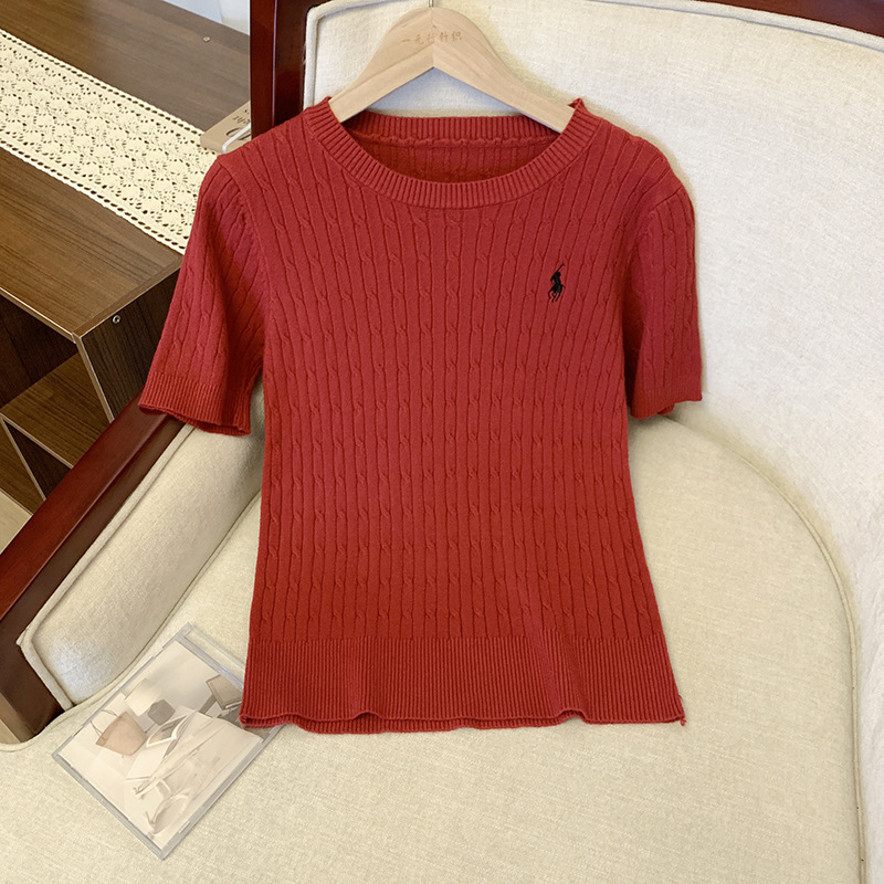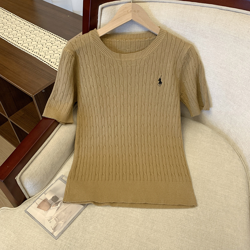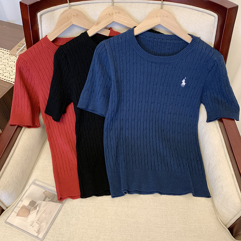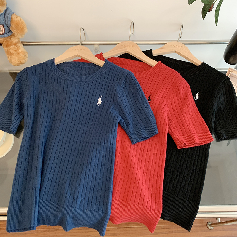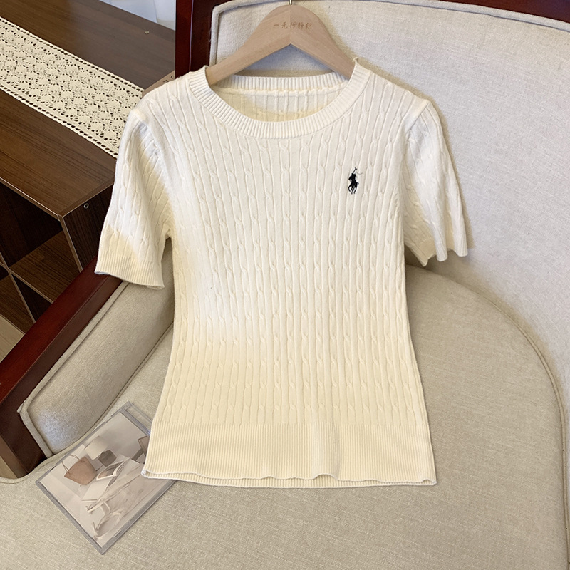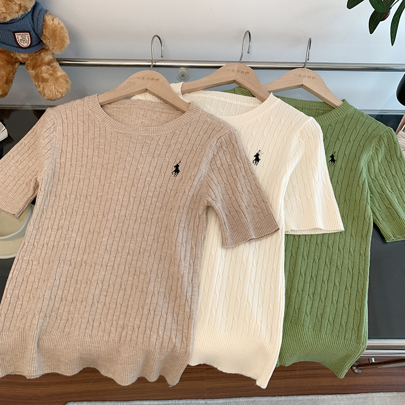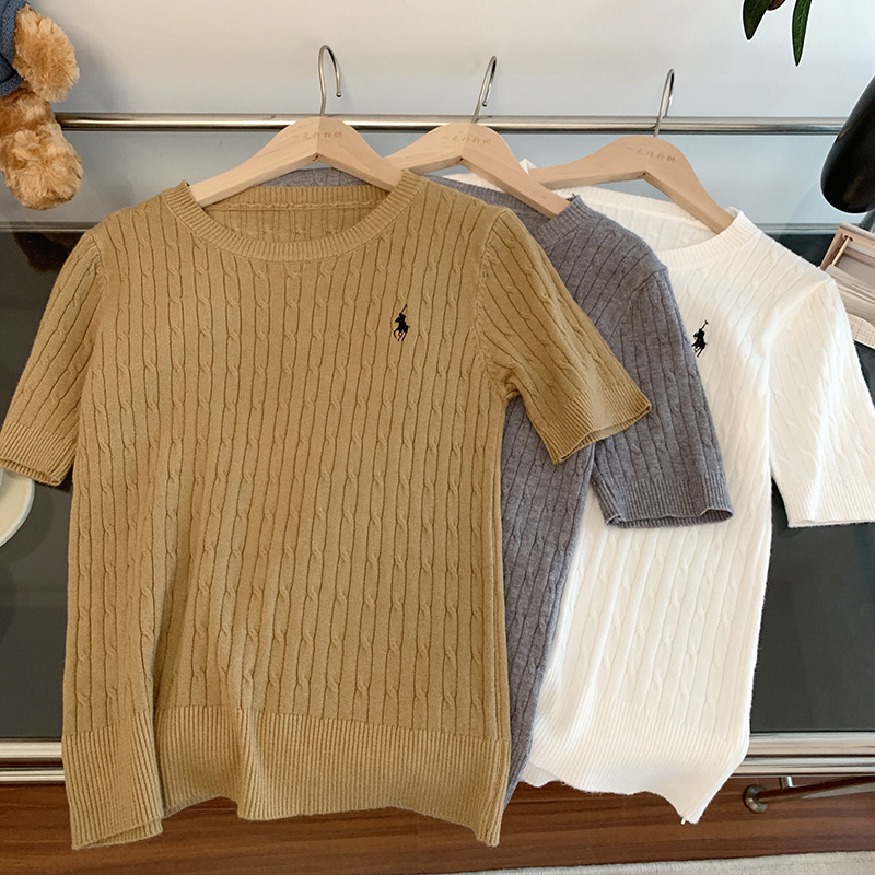 軟糯親膚小馬刺繡麻花針織衫百搭短袖