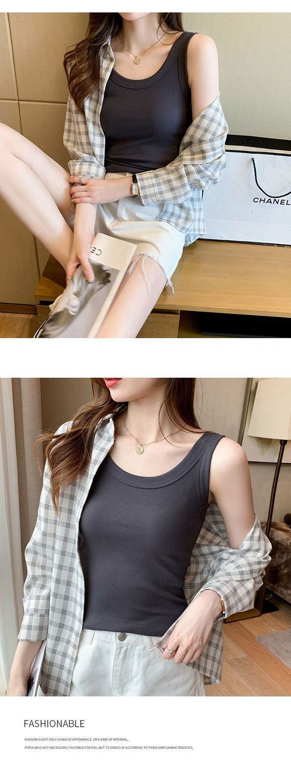 螺紋無袖薄款內搭打底吊帶背心