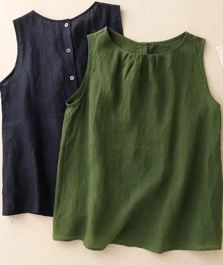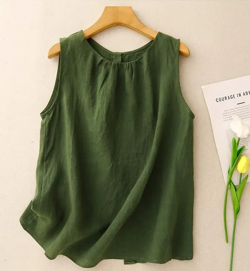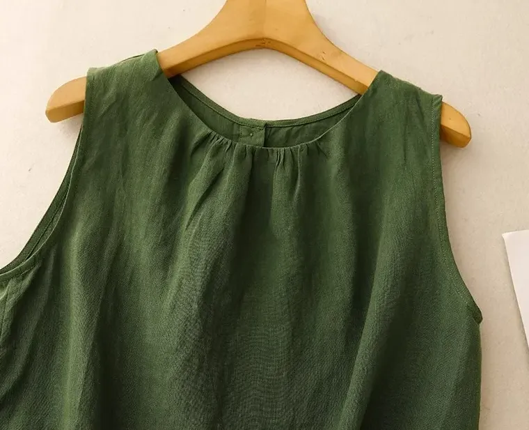 文藝風素色棉麻薄款寬鬆顯瘦無袖背心